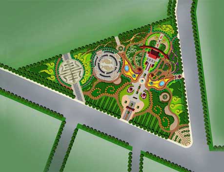 該規(guī)劃充分利用龍(興?。?、蝙蝠(福氣)、壽(長(zhǎng)壽)、臉譜(戲曲藝術(shù))等四大傳統(tǒng)造型元素,結(jié)合現(xiàn)代空間的優(yōu)勢(shì),利用幾何學(xué)創(chuàng)造出一個(gè)宜古宜今、獨(dú)具特色的活動(dòng)交往空間和高品質(zhì)的精美園林,使之成為分界滑縣老城區(qū)與新區(qū)的地標(biāo)場(chǎng)所,更成為滑縣的標(biāo)志性景觀廣場(chǎng)。