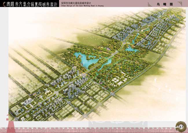規(guī)劃提出“文峰聳秀,水綠靚城”,旨在打造城市空間發(fā)展長廊,串連新老城區(qū)以及各個功能中心,塑造地域人文精神,結合“路、水、綠、房、文”五大要素,使整個街道空間景觀成為演繹安陽新時代人文精神的平臺,展示了安陽的時代風貌和城市特色。