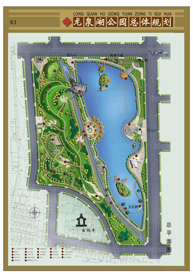 龍泉湖公園是集多種功能為一體的綜合型生態(tài)水景公園,以植物造景為主,突出體現(xiàn)公園生態(tài)、娛樂、休閑、文化、健身的規(guī)劃理念,滿足景觀的可游性、可賞性和可參與性,展現(xiàn)武陟縣城的宜居環(huán)境與風采,成為居民城市休閑場所和水上游樂的公共交往空間。